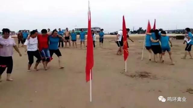 2017年8月19日下午,鳴環禽業在牟平區養馬島海水浴場組織沙灘拓展活動,來自種禽生產部、孵化廠、蓬萊分社、鳴達合作社、鳴康動物醫院及合作社各部門的50多名選手參加了此次活動。比賽項目有皮劃艇比賽、“三人四足”等,進一步激發了員工的團隊協作精神。
