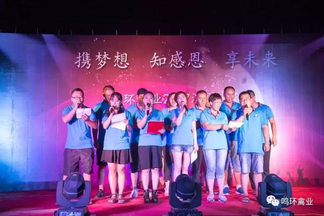 晚上18:58分,鳴環禽業2017年“攜夢想 知感恩 享未來”消夏晚會正式開始,鳴環禽業的親友團及公司員工、家屬等200余人參加了晚會。